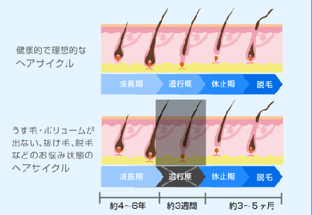 不健康な頭皮では「退行期」を飛ばして、脱毛してしまうのです。